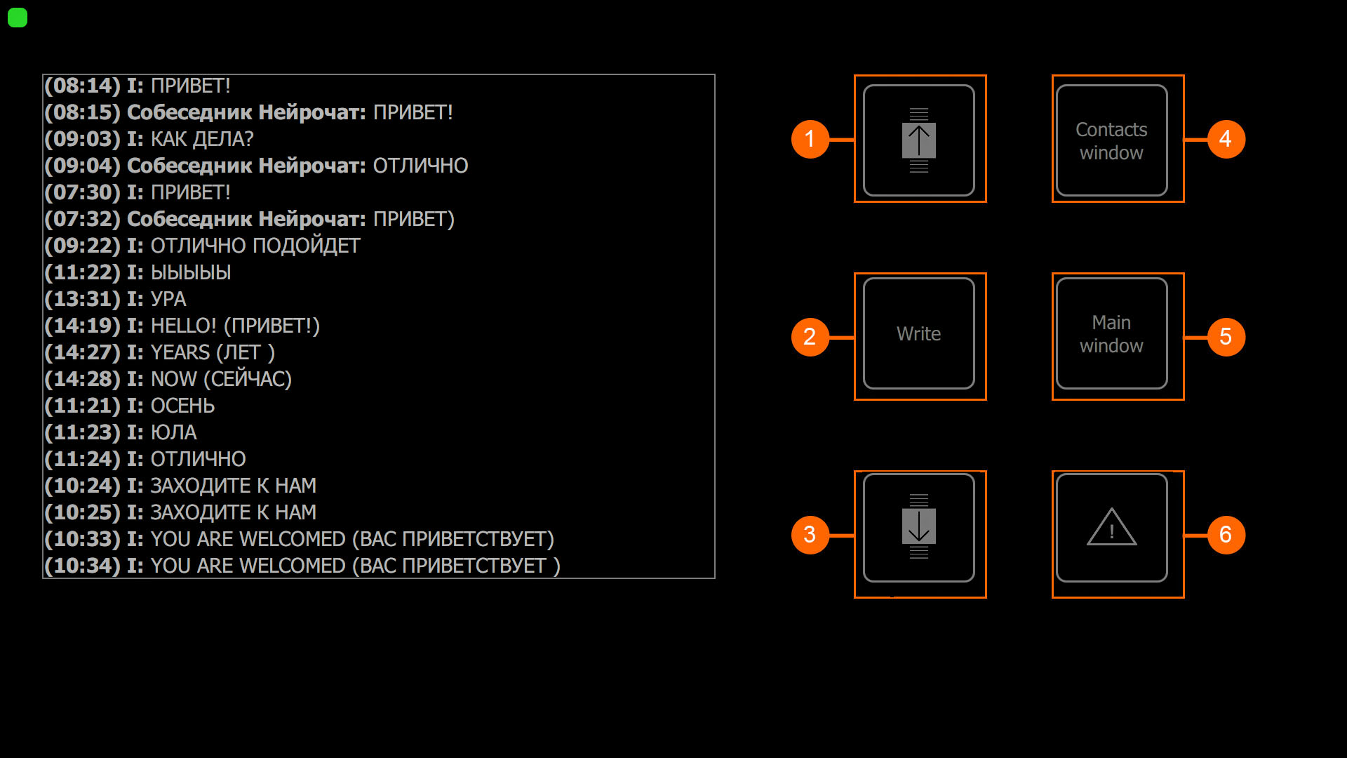 In Chat window you can type a message to the chosen contact.
