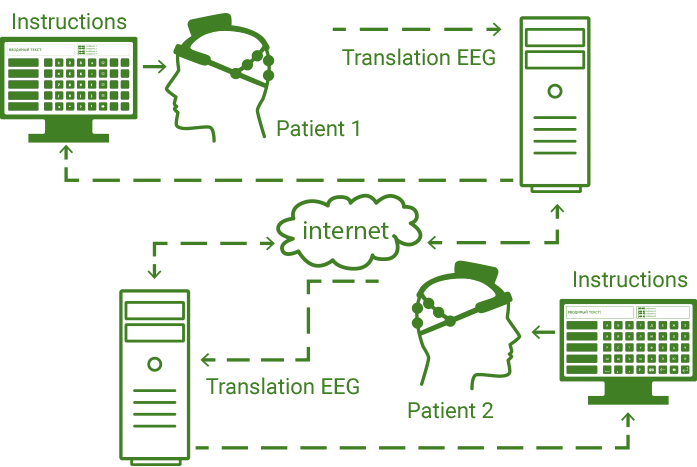 Neurochat allows patients to communicate with each other and other people without speech or any movements and regardless of distance between them